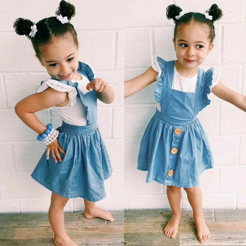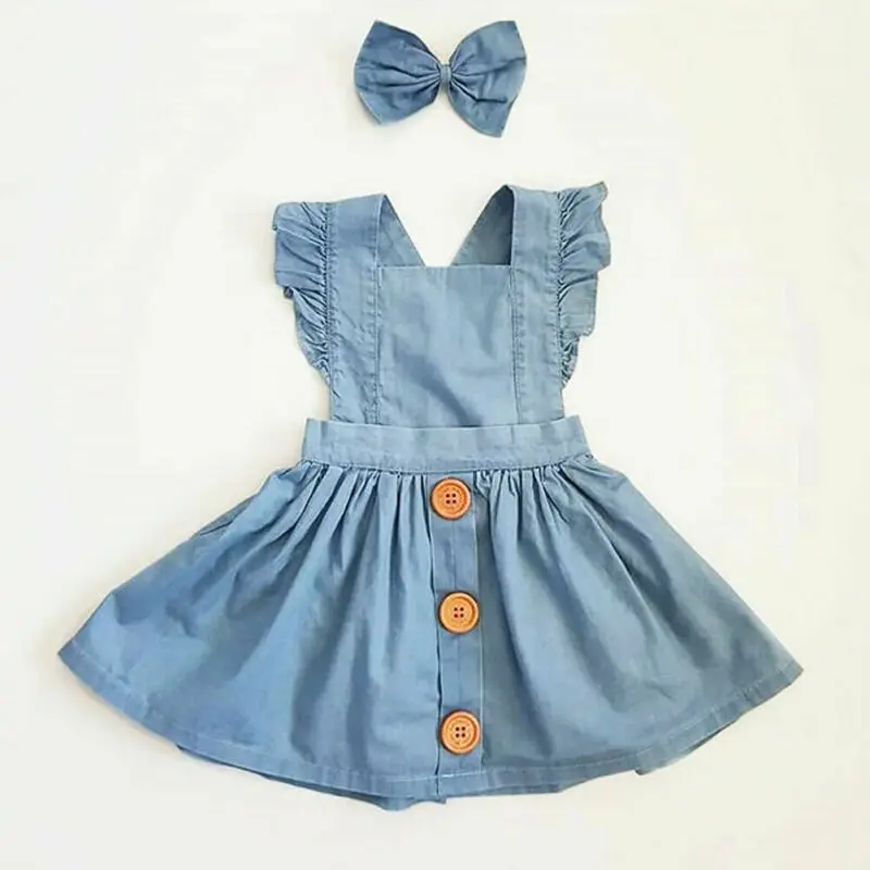 Buy Summer Girls Denim Dress Sleeveless Button Ruffle Mini Princess Dress Backless Baby Girl Clothes Ki Right Here and Right Now Just for USD US $3.83, Price will be rise up at any time without notification and I cant guaranted that the stock is still available tommorow or next hour. So Please Save It Now!