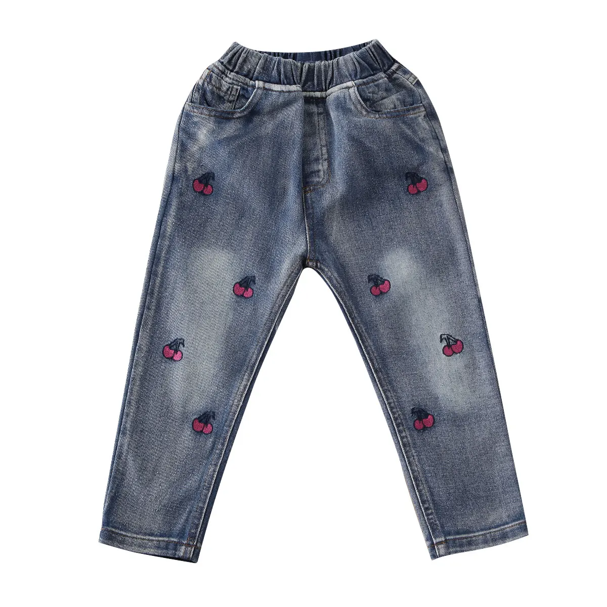 Limited Chance of Toddler Kids Baby Girls Clothes Denim Jeans Pant Cherry Embroidery Elastic waist Denim trousers Bot